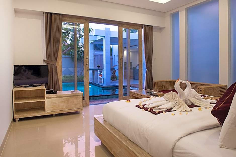 Two-Bedroom Villa with Private Pool Accommodating up to 4 guests, this spacious villa comes with two super large bedroom, a kitchenette, dining area and a living room. It also has a flat-screen cable TV.